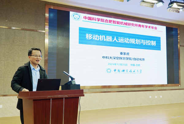 中國科學技術大學秦家虎教授做題為《移動機器人運動規劃與控制》的特邀報告,他從智能移動機器人技術的大量應用案例、關鍵技術出發,詳細介紹了團隊在移動機器人運動規劃與控制方面的最新研究進展、主要學術貢獻等。中國科學技術大學譚樹堂教授做題為《生長素與植物生長發育》的特邀報告,他結合生長素的研究背景,重點介紹了團隊在生長素極性運輸的調控機理、化學干預,生長素和植物生長-免疫平衡等研究方向上的進展。合肥物質院科研規劃處季大方老師做了2025年國家自然科學基金申報與指導,重點解讀了智能所國家自然基金申請資助情況,介紹了2025年度政策情況及申報工作安排。