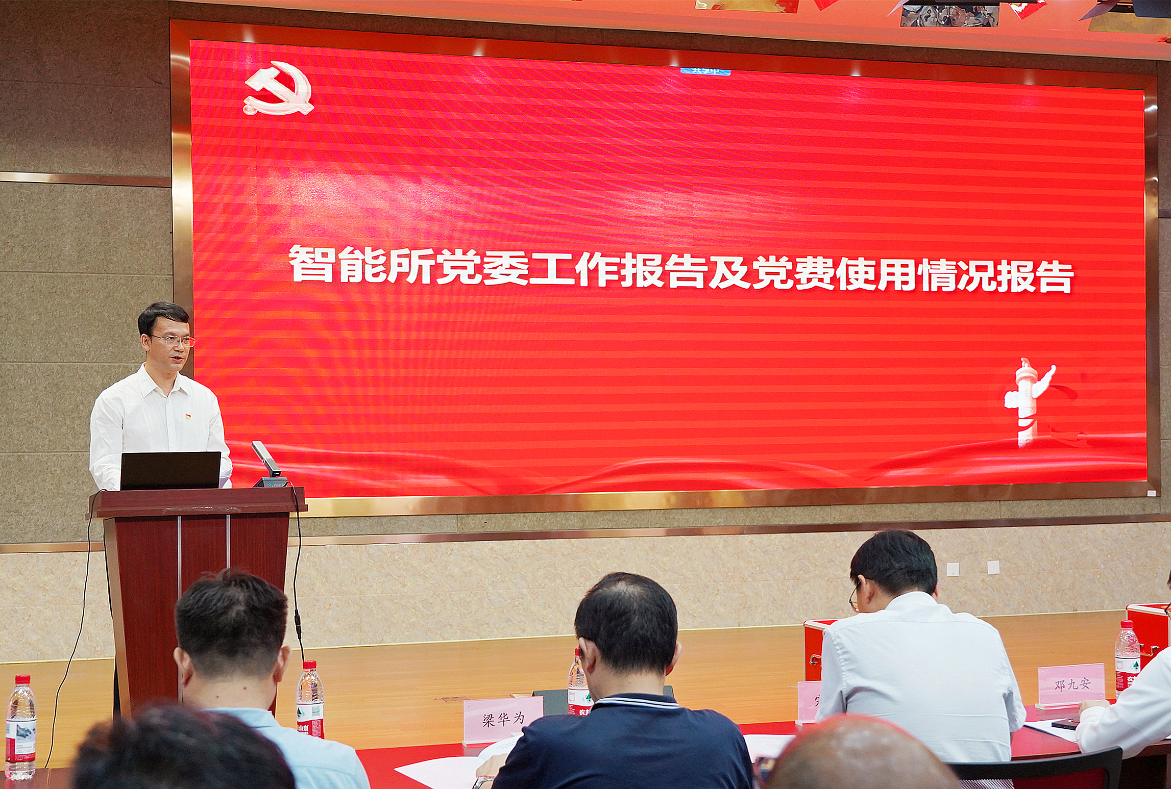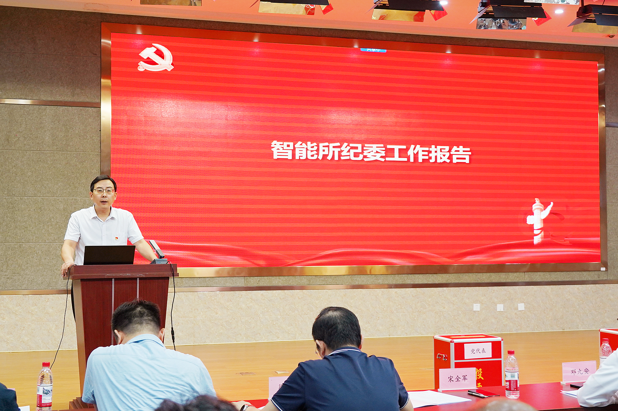 鄧國慶代表智能所第八屆黨委作了題為《黨建引領謀發展,凝心聚力譜新篇》的工作報告。報告全面系統地回顧了研究所五年多來在政治思想建設、決策部署落實、黨建與業務融合、紀律與作風建設、創新文化建設等方面取得的工作成效。報告指出,智能所黨委始終堅持以黨的政治建設為統領,以“保穩定、促融合、抓發展”為核心指引,通過建立健全主題教育常態化長效化機制,持續推動黨建與科研深度融合,充分發揮群團組織橋梁紐帶作用,為研究所的改革創新發展提供了堅強保障和強大合力。