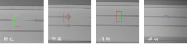 新型冠狀病毒(SARS-CoV-2)IgM/IgG抗體檢測試劑盒的M G C三線劃線質量是檢測結果可靠性的重要保障。傳統的劃線質量檢測需通過人工目視和手動標記來實現,精度較低且無法做到全程可控?;趫D像的檢測和標記系統通過高性能圖像處理技術對劃線品質進行高精度實時檢測,并對缺陷種類(包括斷線、暈染、抖動、異物等)及位置進行自動標記。從典型工況的測試結果來看,可實現零漏檢,從而有效保障產品質量,以科技服務抗疫事業。產品已申請發明專利2項,軟著2項。