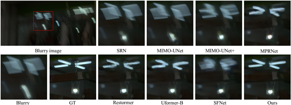 MLWNet與其他sota模型在RSBlur測試集上的可視化結(jié)果對比圖