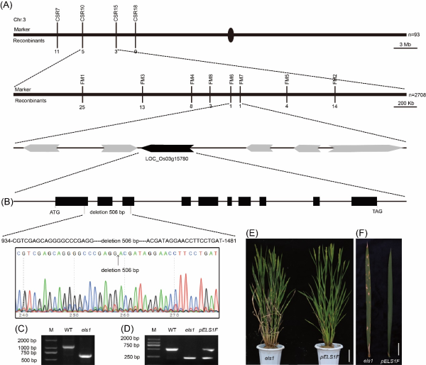 圖3 ELS1基因圖位克隆與遺傳互補