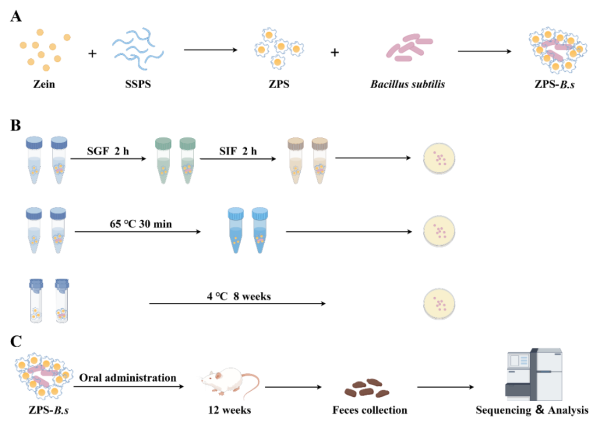 益生菌是可以定植在體內,改變宿主菌群組成的有益活性微生物。科研團隊利用玉米醇溶蛋白和可溶性大豆多糖形成復合物,對益生菌進行封裝。在模擬胃腸道條件和巴氏殺菌過程中顯著了提高益生菌存活率,并在儲存條件下也表現出極佳的穩定性。進一步,科研人員通過動物實驗發現,大鼠口服用復合物封裝的益生菌增加腸道有益菌群豐度、抑制有害菌群生長,達到正向調節腸道菌群組成的目的。研究有助于開發食品級益生菌輸送系統,也為設計益生菌功能食品提供了新方法。