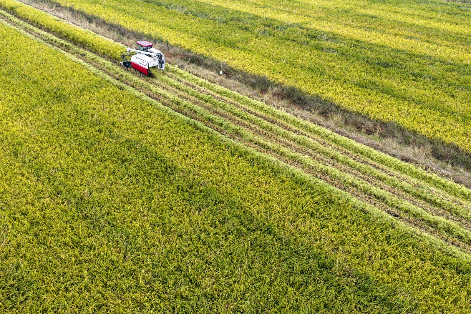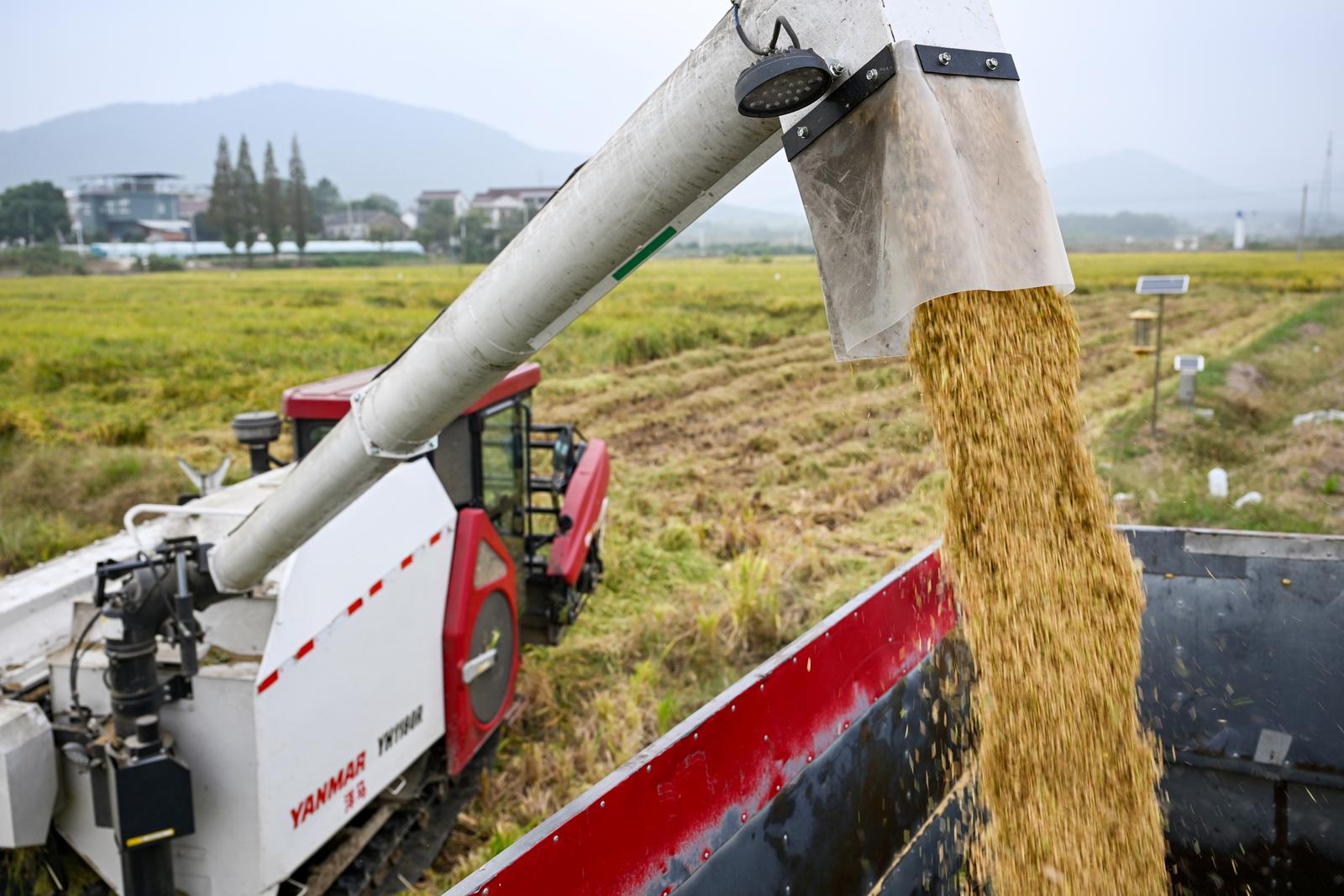 10月11日,在位于馬鞍山市和縣的十四五國家重點研發計劃“稻-麥(油)綠色豐產增效技術研發及集成示范”項目實施的核心基地,水稻收割機正在田間作業。今年這里的2000多畝水稻克服了不利的氣候因素,平均畝產仍接近700kg。