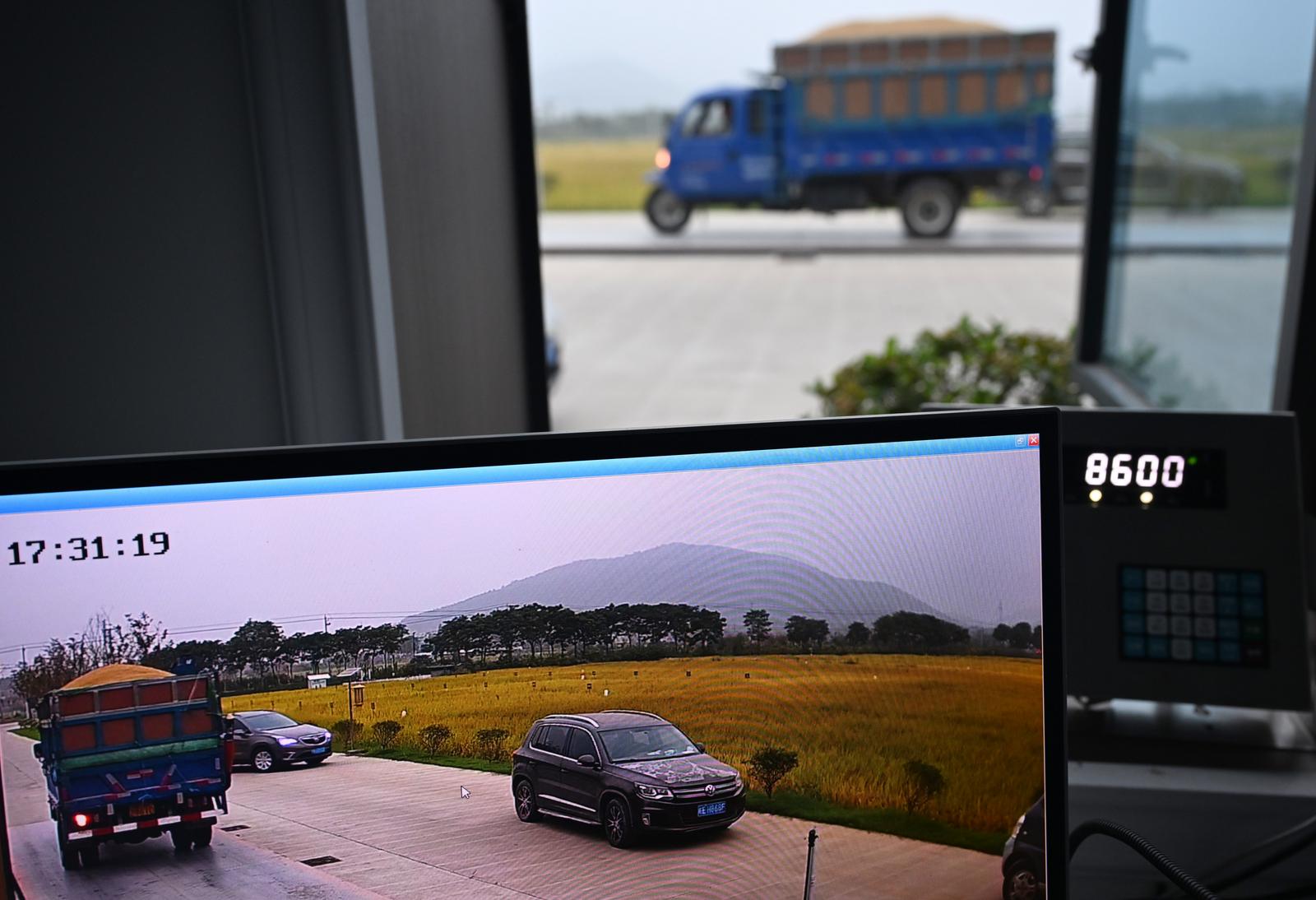 ?10月11日,在馬鞍山市和縣的稻-麥(油)綠色豐產增效技術集成示范基地,滿載水稻的拖拉機正在過地磅。今年這里的2000多畝水稻克服了不利的氣候因素,平均畝產仍接近700kg。