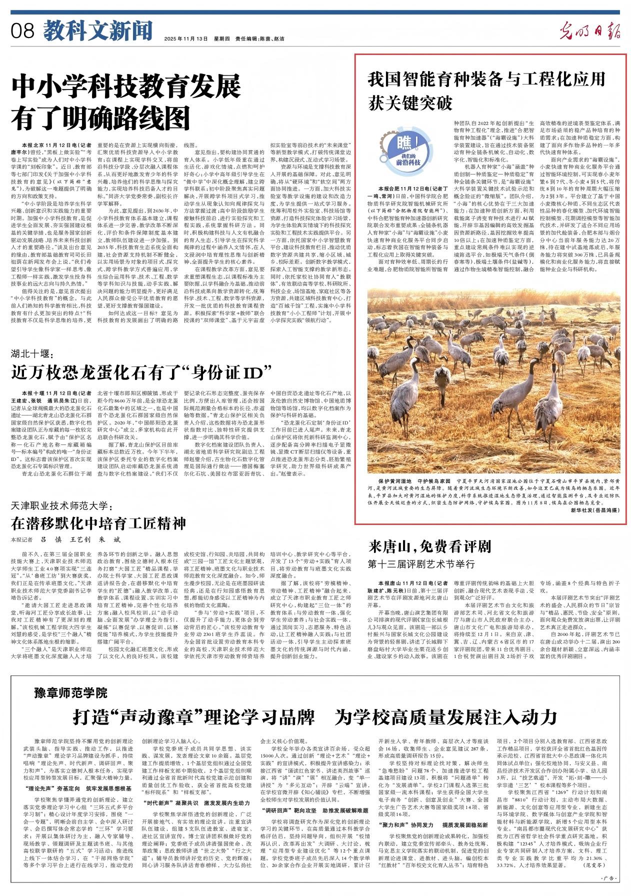 本報(bào)合肥11月12日電(記者丁一鳴、常河)日前,中國科學(xué)院合肥物質(zhì)科學(xué)研究院智能機(jī)械研究所(以下簡稱“合肥物質(zhì)院智能所”)、中科合肥智能育種加速器創(chuàng)新研究院聯(lián)合發(fā)布重要成果:全鏈條機(jī)器人育種家“小海”與“海霸設(shè)施”小麥快速育種商業(yè)化服務(wù)平臺(tái)同步啟動(dòng),標(biāo)志著我國在智能育種裝備與工程化應(yīng)用上取得關(guān)鍵突破。